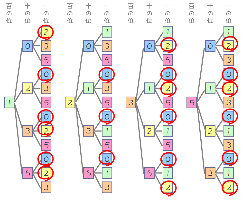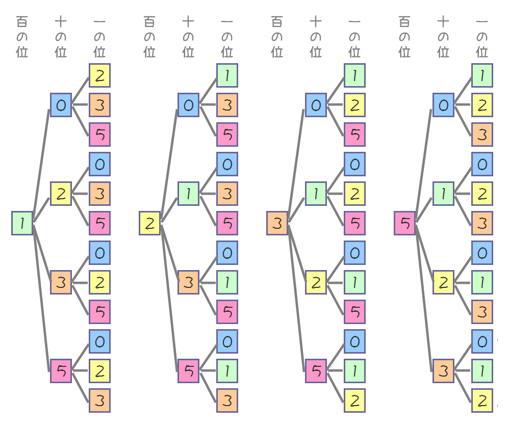 そうか。それじゃ全体が分かるように、樹形図を書いてみようか。