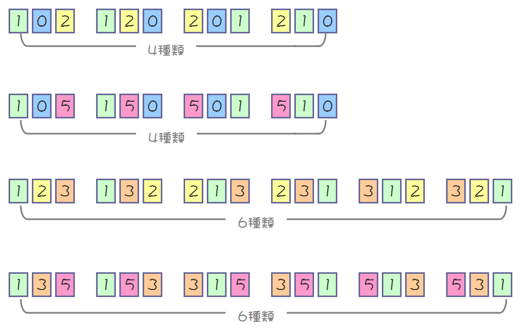 「0」「1」「2」「3」「5」の組み合わせでできるのは、