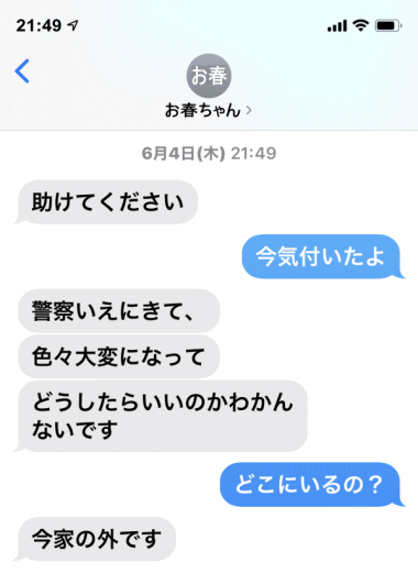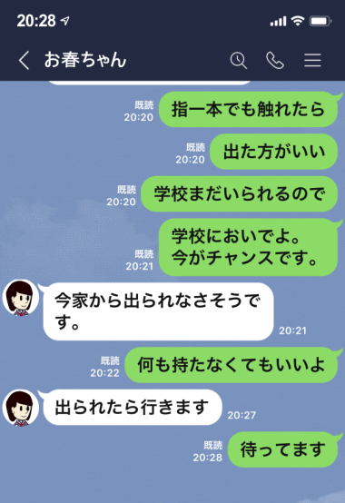 ・小春ちゃんが「相談したことを親には秘密にして欲しい」と訴えている。