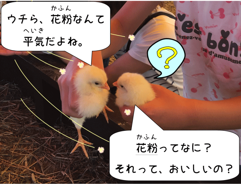 ヒヨコは花粉より、子どものほうがこわい[contact-form][contact-field label=”お名前” type=”name” required=”true” /][contact-field label=”メール” type=”email” required=”true” /][contact-field label=”ぎもんしつもんねがいごとなど” type=”textarea” /][/contact-form]