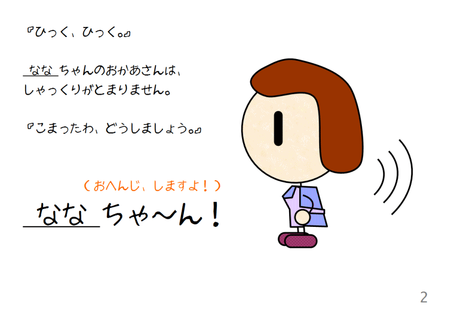なな ちゃんのおかあさんは、しゃっくりがとまりません。