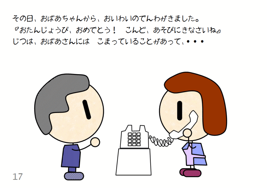 その日、おばあちゃんから、おいわいのでんわがきました。