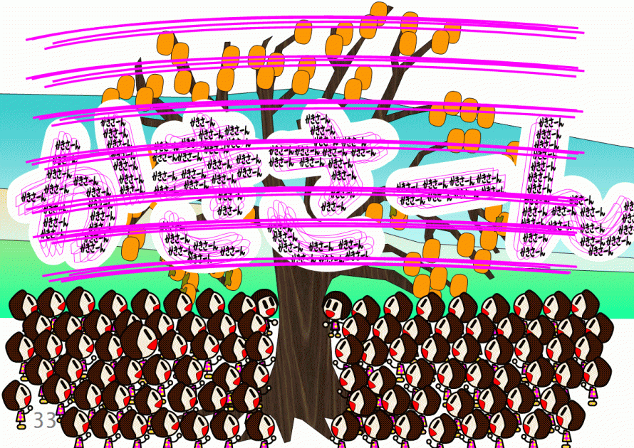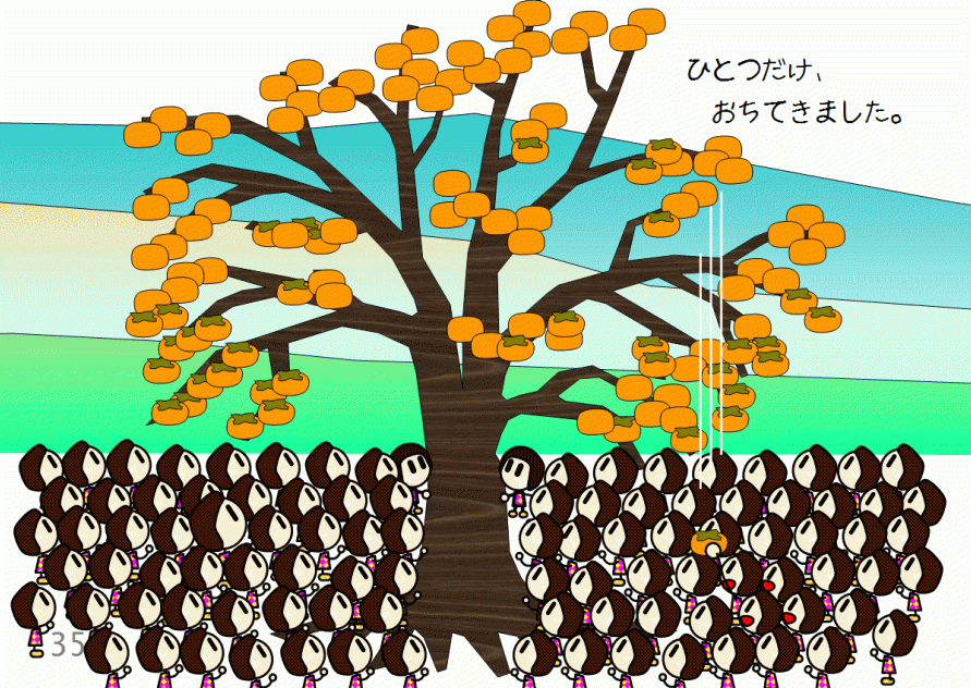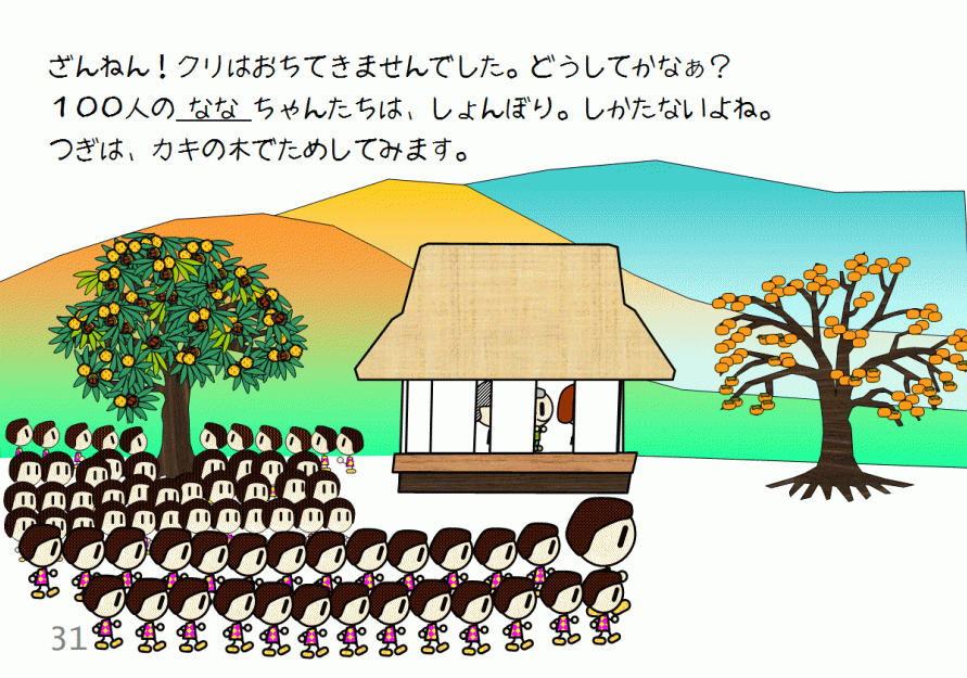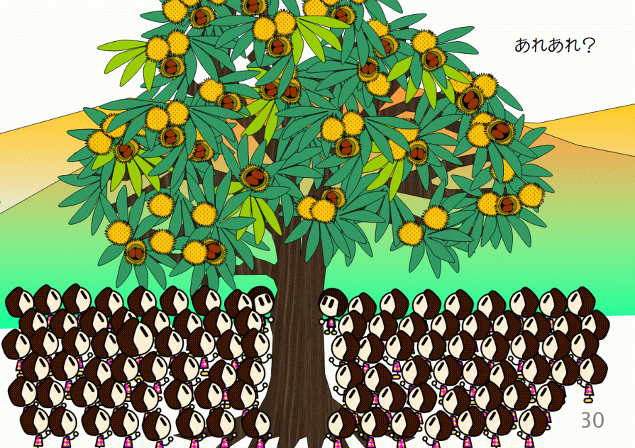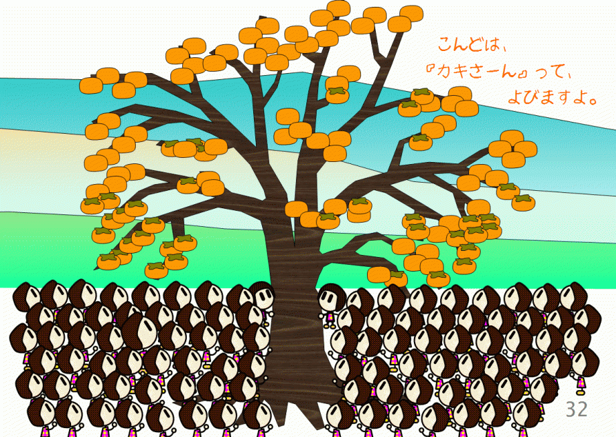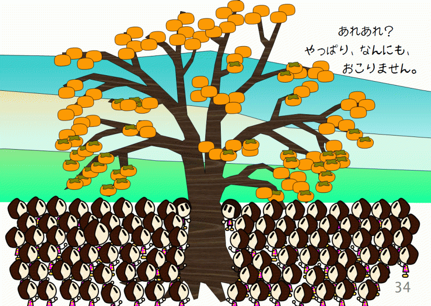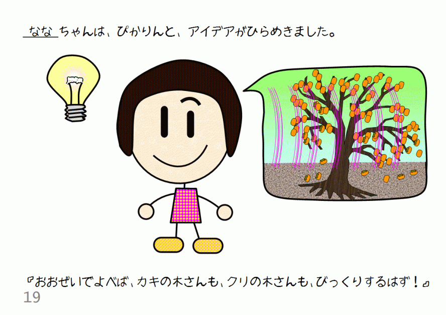 『おおぜいでよべば、カキの木さんも、クリの木さんも、びっくりするはず!』