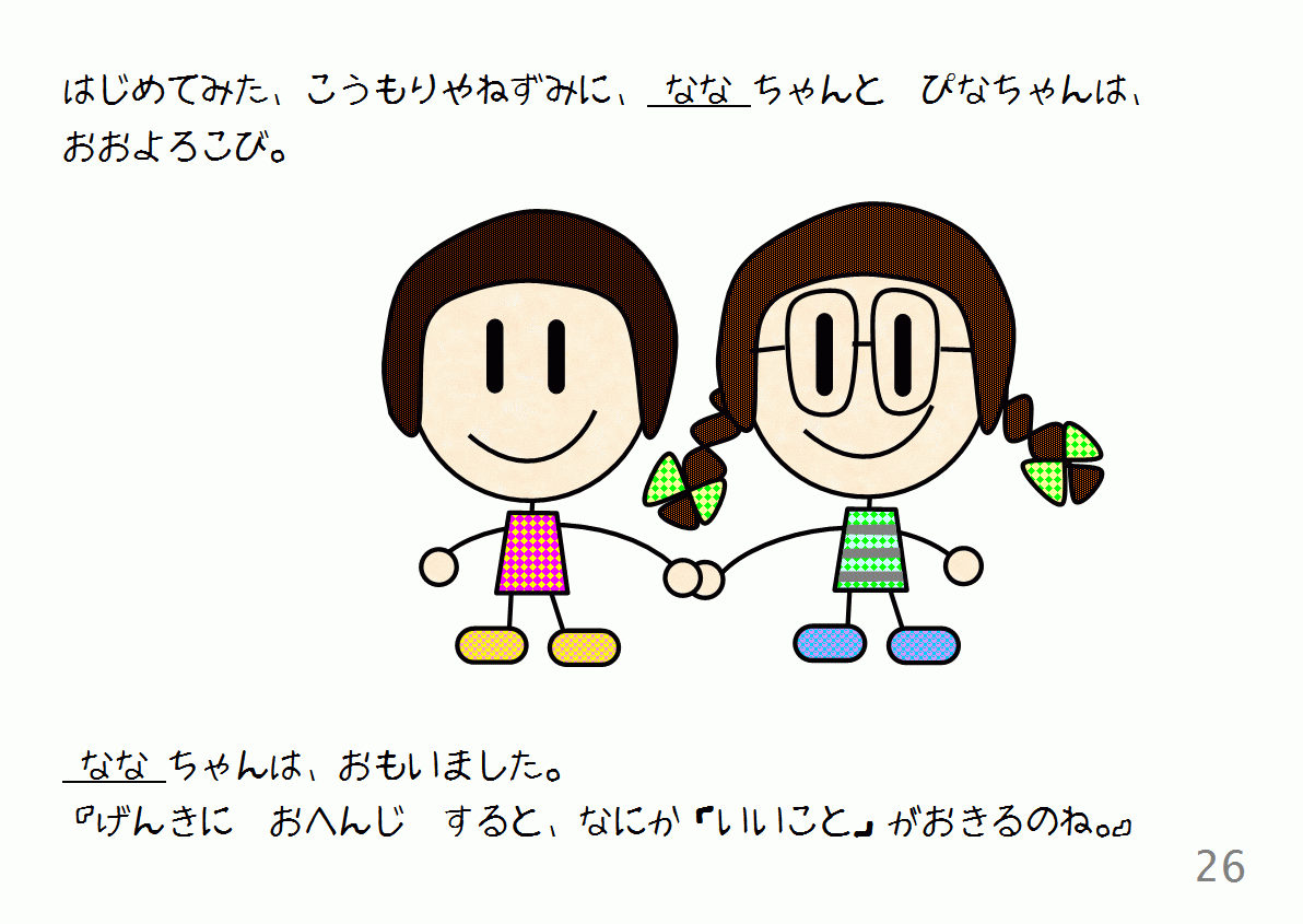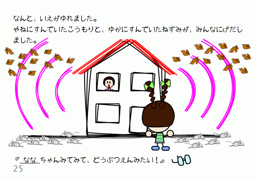 25ページはじめてみた、こうもりやねずみに、 なな ちゃんと ぴなちゃんは、