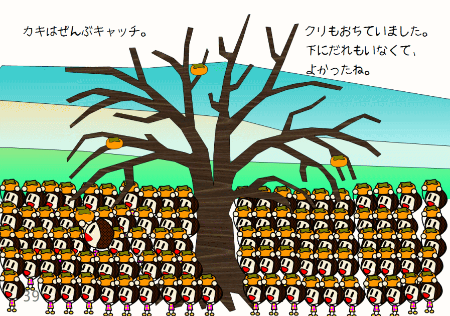 またまた、いえがゆれました。 カキ と クリ はどうなったでしょう?