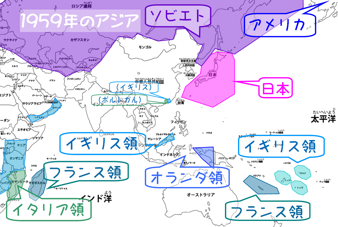 終戦後14年がたつと、アジアの諸国は、次々と独立していきます。
